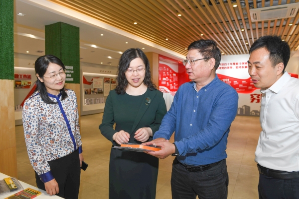 圖為翁敏(左二)在下應(yīng)街道灣底村調(diào)研清廉村居建設(shè)