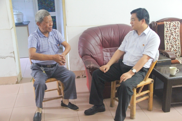 圖為童華強走訪基層群眾,了解村民家庭生活和惠民政策落實情況。