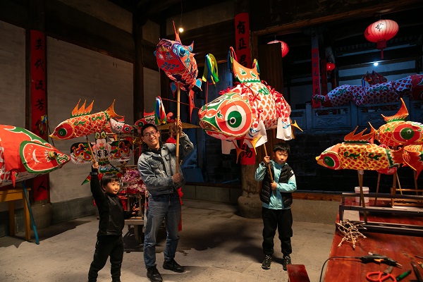 安徽省歙縣澹淇村的魚燈舞傳承久遠。裱魚燈、練步伐、比舞技,人們趁著冬日閑暇為正月的表演做著準備。(安徽省績溪縣紀委監委供 章曉璇 攝)